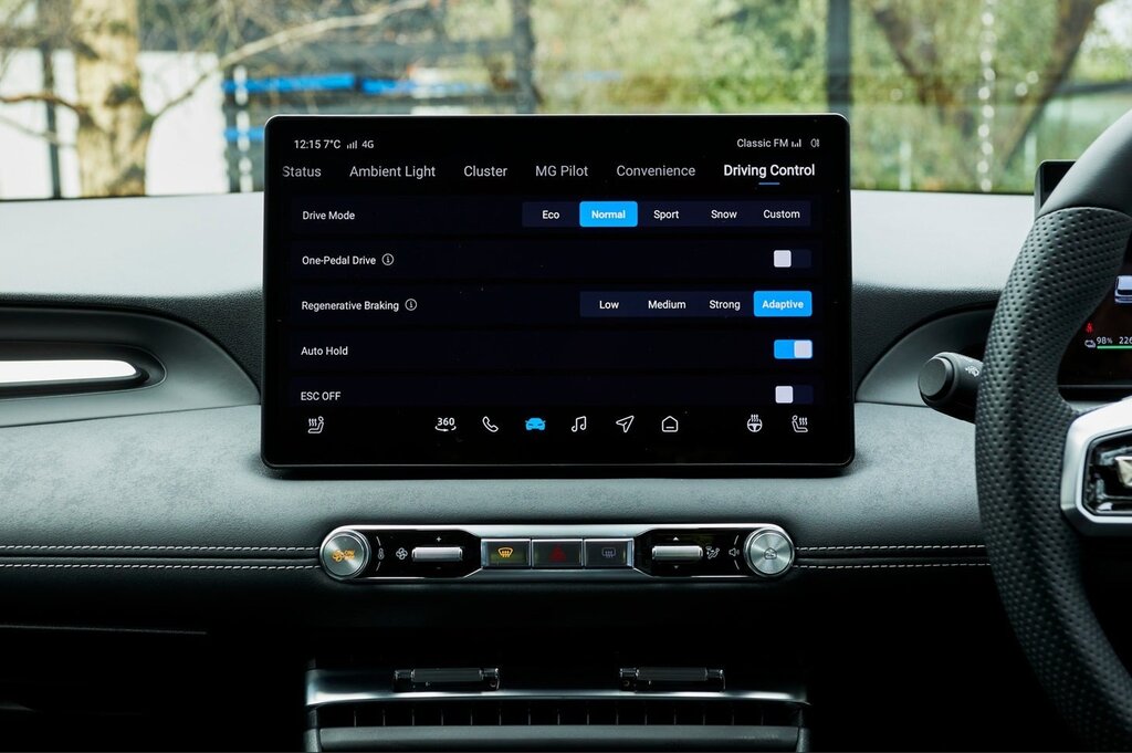 David Allison: From an interior point of view, there are lots of similarities to the MG4. The dual screen layout is present and there are also physical controls for key functions. Another point to note is we have freed up space on the centre console by moving the EV drive selector, which is now located on the right-hand stalk.